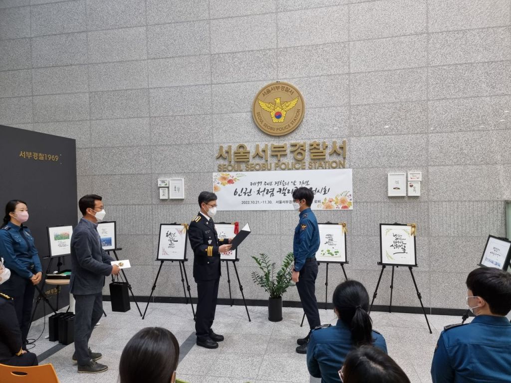 [아시아경제 공병선 기자] 서울 서부경찰서는 21일 오전 10시30분께 제77주년 경찰의 날을 맞아 본관에서 '캘리공감 전시회'를 개최했다고 이날 밝혔다.