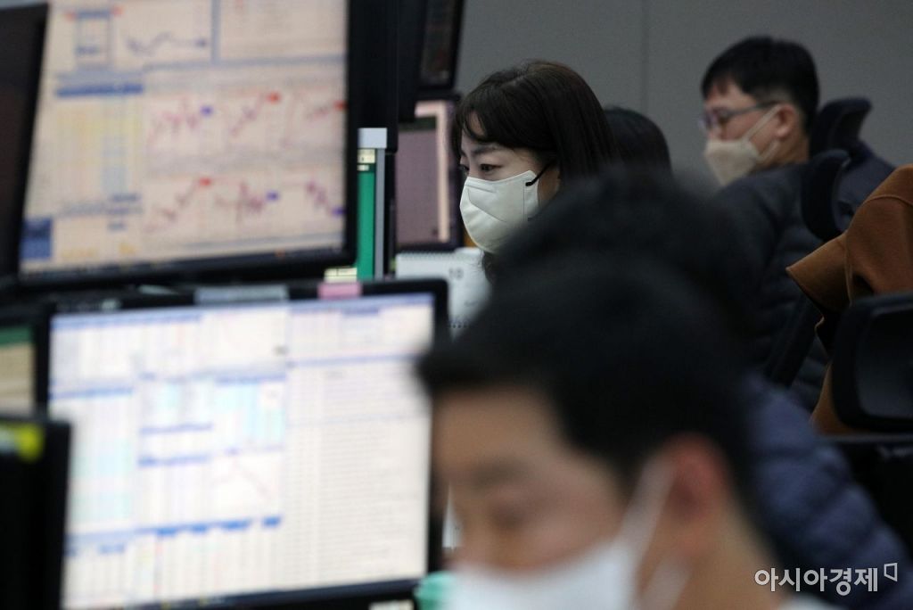 코스피가 전 거래일보다 25.38포인트(1.15%) 하락한 2187.17에 개장한 17일 서울 중구 하나은행 딜링룸에서 직원들이 분주하게 업무하고 있다. 원·달러 환율은 12.4원 오른 1440.9원에 출발했다./김현민 기자 kimhyun81@
