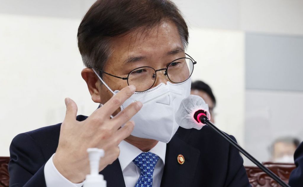 이정식 고용노동부 장관이 지난 5일 오후 세종시 정부세종청사에서 열린 국회 환경노동위원회의 고용노동부 등의 국정감사에서 의원 질의에 답변하는 모습.(이미지 출처=연합뉴스)