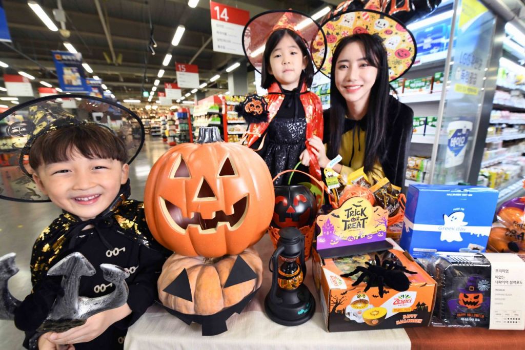 홈플러스에서 모델들이 핼러윈 코스튬을 입고 행사 제품을 소개하고 있다. (사진제공=홈플러스)