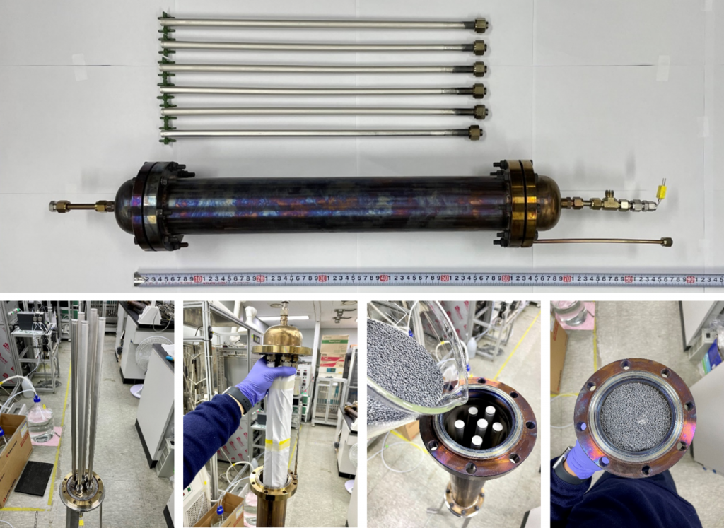 암모니아에서 고순도 수소 생산- 국산화에 성공한 팔라듐 복합 분리막(위)과 하루 2 kg 수소 생산이 가능한 분리막 반응기(아래)