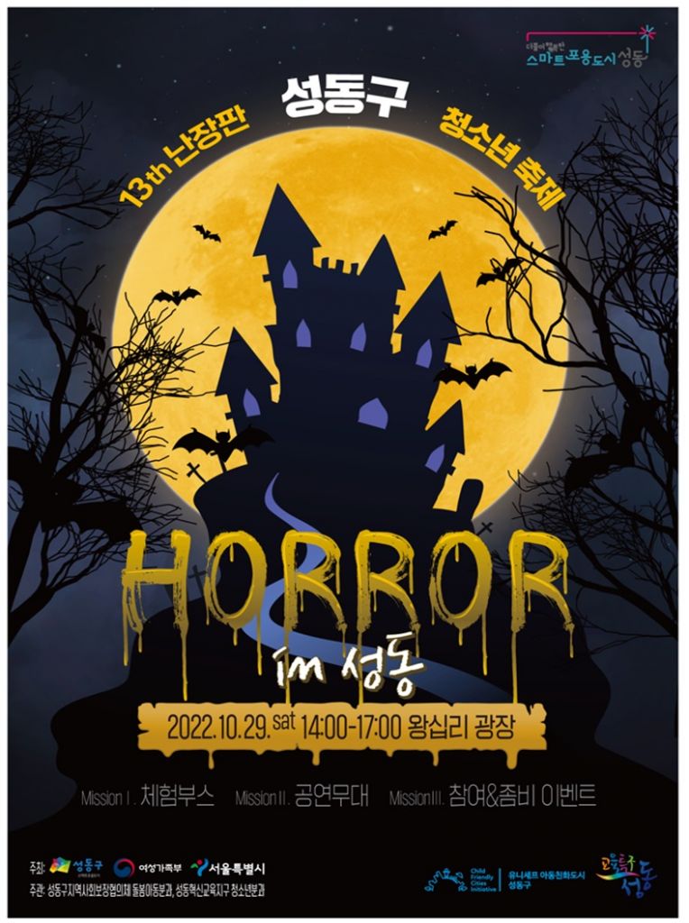 성동구(구청장 정원오)는 29일 오후 2시 왕십리광장에서 제13회 청소년 축제 ‘난장판(부제: Horror in 성동)’을 개최한다고 밝혔다.