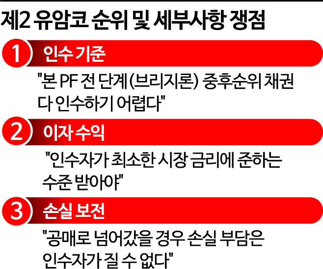PF ABCP 인수 기준을 분명히 정하지 않으면 사실상 손실 가능성이 높은 채권을 대형사들이 떠맡게 될 수 있다. 대형사가 제2 유암코 설립 취지에 공감하면서 불편한 기색을 숨기지 않는 이유다. 대형 증권사 CEO는 "증권사 대부분이 상장된 기업이라 배임 논란이 생기면 곤란하다"며 "경쟁사의 유동성을 위해 손실을 감수하면서 자금을 지원하는 것은 받아들이기 힘들다"라고 말했다.