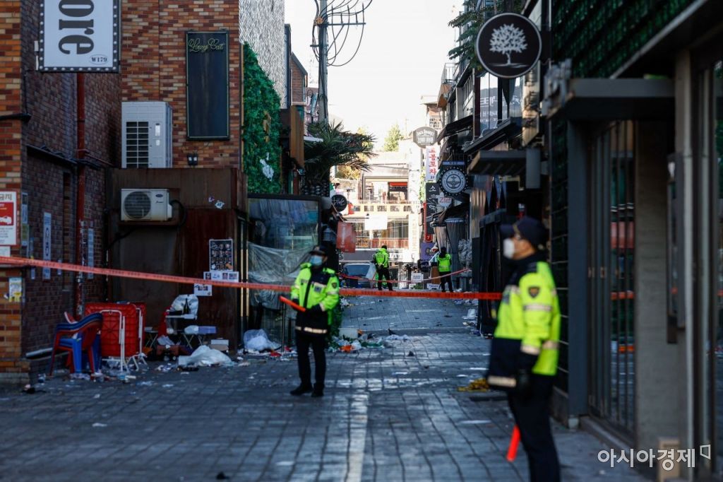 이태원 대형 압사 참사로 인한 국가애도기간이 이어지고 있는 2일 서울 용산구 이태원 참사 현장 일대를 경찰병력이 출입통제 하고 있다./강진형 기자aymsdream@