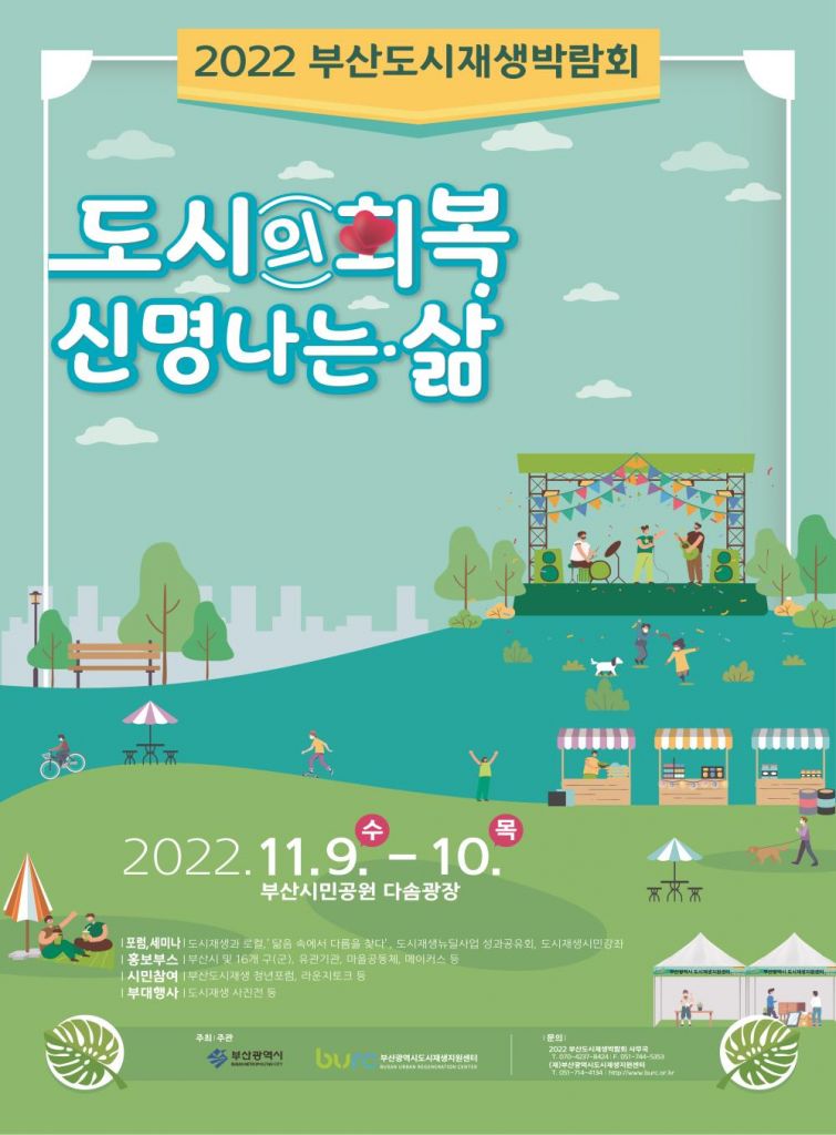 [아시아경제 영남취재본부 김용우 기자] 2022년 부산도시재생박람회가 이태원 사고 국가 애도 기간 이후인 오는 9~10일 개최된다.