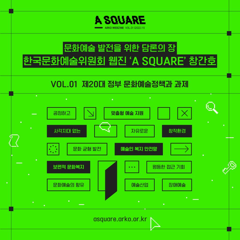예술위는 웹진 'A SQUARE'는 건강한 문화생태계를 만드는 공론장으로 문화예술이 마주한 문제를 함께 나누고 탐구하고 이를 기억해 문화예술의 가치를 알리기 위해 덧붙였다.