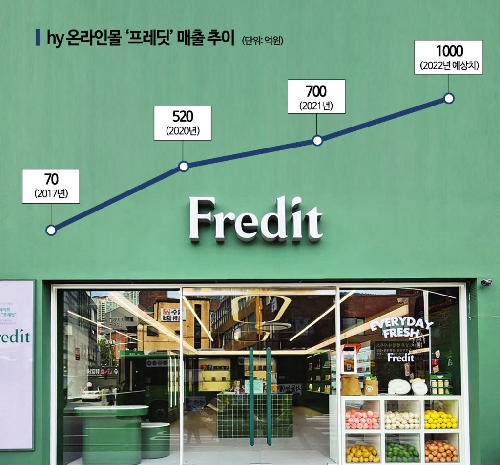 hy는 지난 4월 프레딧에 AI 마케팅 솔루션 ‘그루비’를 도입했다. 갈수록 온라인 거래 비중이 높아지고 있는 만큼 자사 몰 육성을 통해 직접 고객 데이터를 수집 및 가공하고 이를 개인화 상품 추천 등의 방식으로 활용해 채널의 매출 성장에 활용하는 것이다. 여기에 기존 프레시 매니저 유통망을 통한 빠른 무료배송 등 뛰어난 온·오프라인 연계 서비스도 프레딧 성장에 기여하고 있는 것으로 보인다.