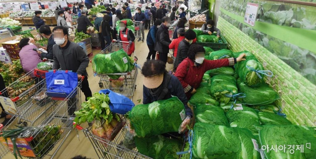 서울 한 대형마트에서 소비자들이 김장 준비를 위해 배추를 고르고 있다./강진형 기자aymsdream@