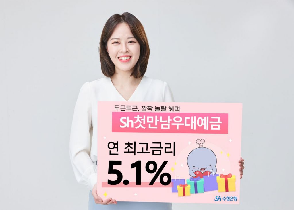 [아시아경제 송승섭 기자] Sh수협은행은 연 최고 5.1% 금리를 제공하는 ‘Sh첫만남우대예금’을 출시했다고 15일 밝혔다.