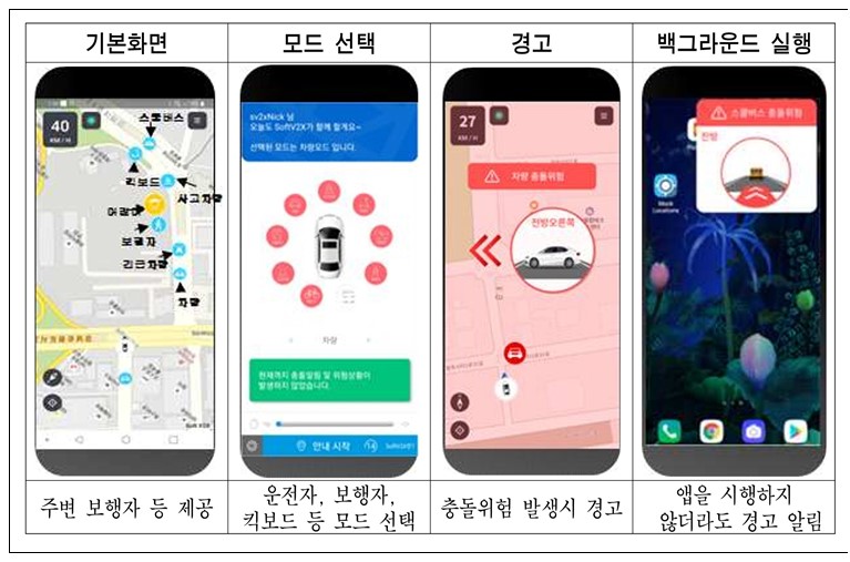 이에 따라 보행자가 스마트폰에 앱만 설치하면 인근에 운행 중인 차량 간 충돌위험을 미리 감지할 수 있다. 주변을 지나갈 때 차량, 오토바이, 자전거, 킥보드, 보행자 등 차량과 사람 간의 충돌 위험을 사전에 예측할 수 있게 되며 차량 이용자와 보행자 등 모든 교통수단 이용자가 활용할 수 있다.