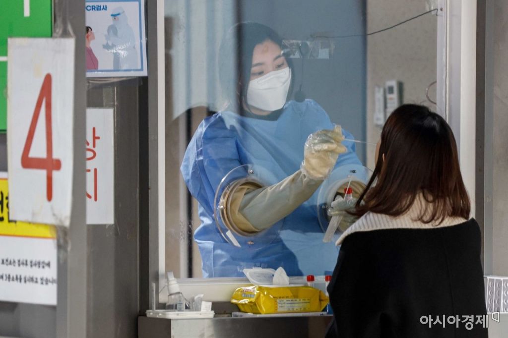 15일 서울 용산구보건소에 마련된 선별진료소를 찾은 시민이 검사를 받고 있다. 사진=강진형 기자aymsdream@