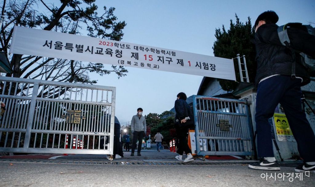 2023학년도 대학수학능력시험일인 17일 서울 종로구 경복고등학교에서 수험생이 시험장으로 이동하고 있다./강진형 기자aymsdream@