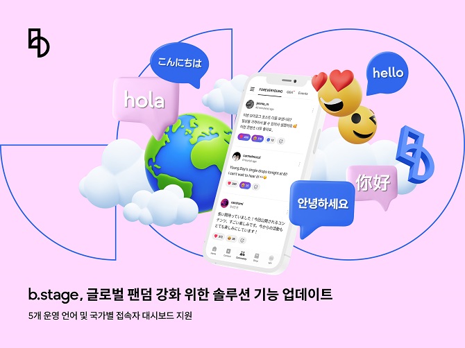 글로벌 팬덤 비즈니스 기업 비마이프렌즈가 개발한 SaaS 솔루션 ‘비스테이지(b.stage)’에 글로벌 사용자를 위한 기능을 업데이트하며 해외 시장을 본격 겨냥한다.