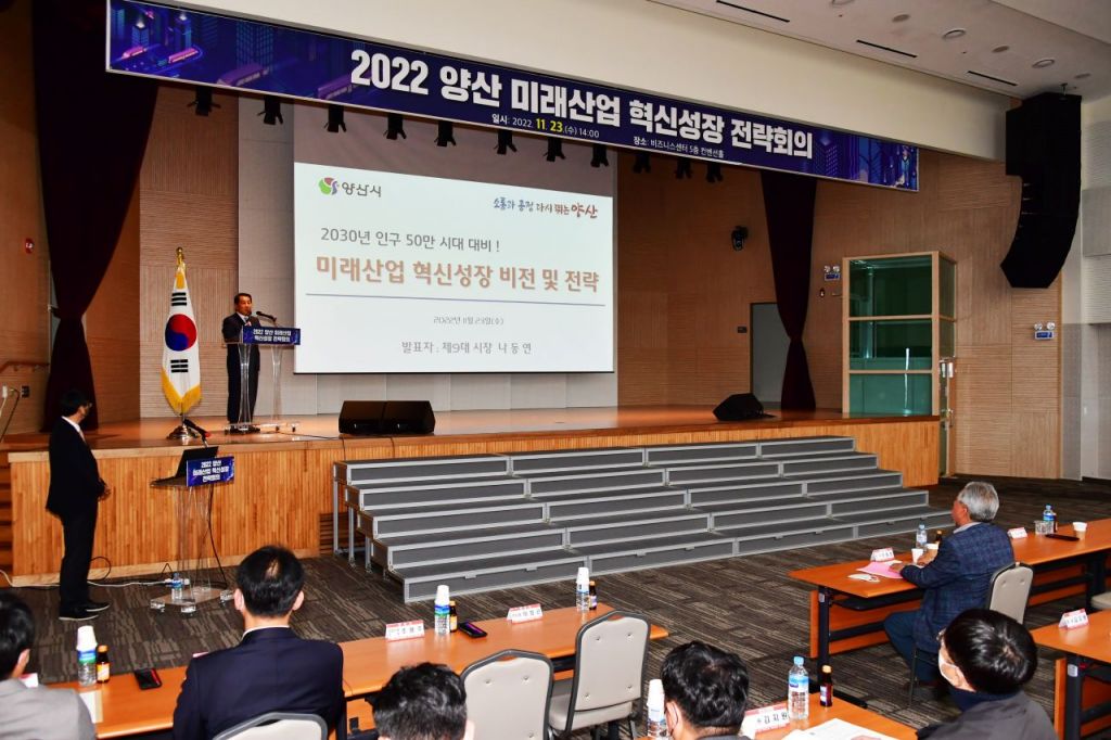 [아시아경제 영남취재본부 황두열 기자] 경남 양산시가 23일 오후 2시 양산비즈니스센터 컨벤션홀에서 ‘2022 양산 미래산업 혁신성장 전략회의’를 개최했다.