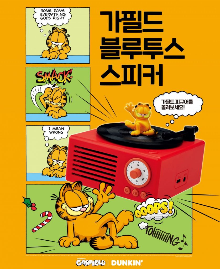 던킨은 가필드 블루투스 스피커 출시를 기념해 30일부터 다음 달 6일까지 일주일간 ‘사전 예약 프로모션’을 실시한다. 픽업 기간은 다음 달 7일부터 11일까지로 원하는 매장에서 수령 가능하다.