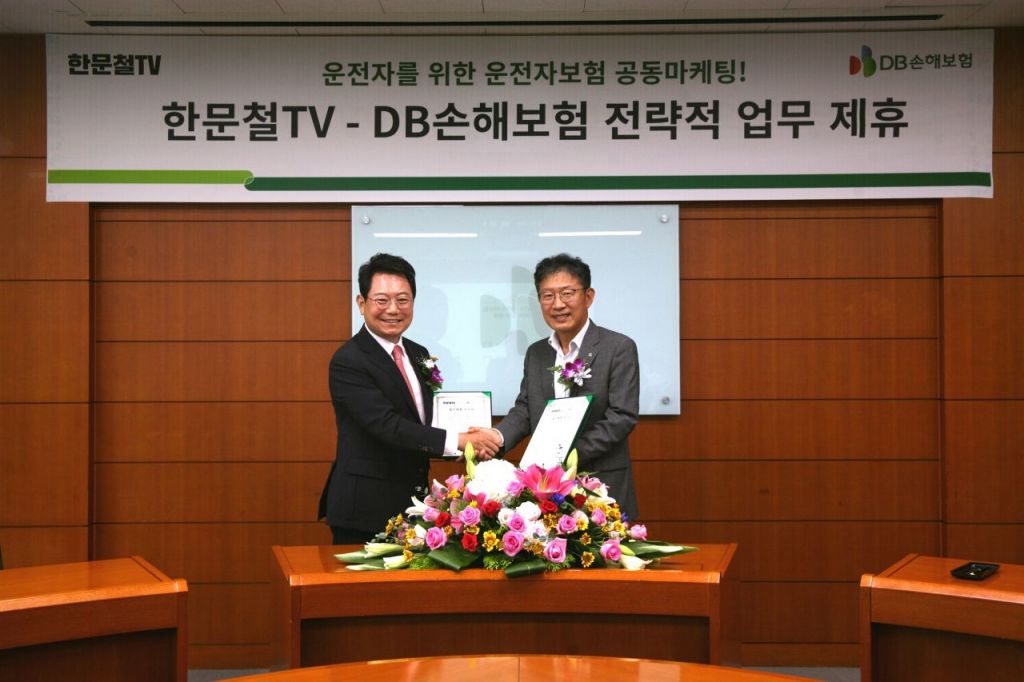 DB손해보험 박제광 부사장과 한문철TV 한문철 변호사가 업무제휴를 맺고 기념촬영을 하고있다.(오른쪽부터)