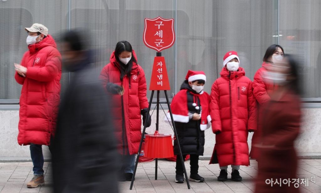 매서운 동장군이 기승을 부린 4일 서울 중구 명동에서 구세군 자선냄비 봉사자들이 모금 활동을 하고 있다./김현민 기자 kimhyun81@