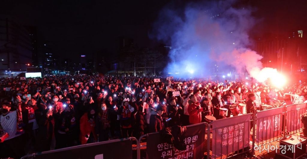 한편 서울시는 포르투갈과의 경기가 있던 3일 새벽 난방시설이 갖춰진 쉼터 텐트를 광화문광장에 설치했다. 지하철과 시내버스 등 대중교통 운행시간도 조정했다. 거리응원에 큰 무리는 없는 상태다.