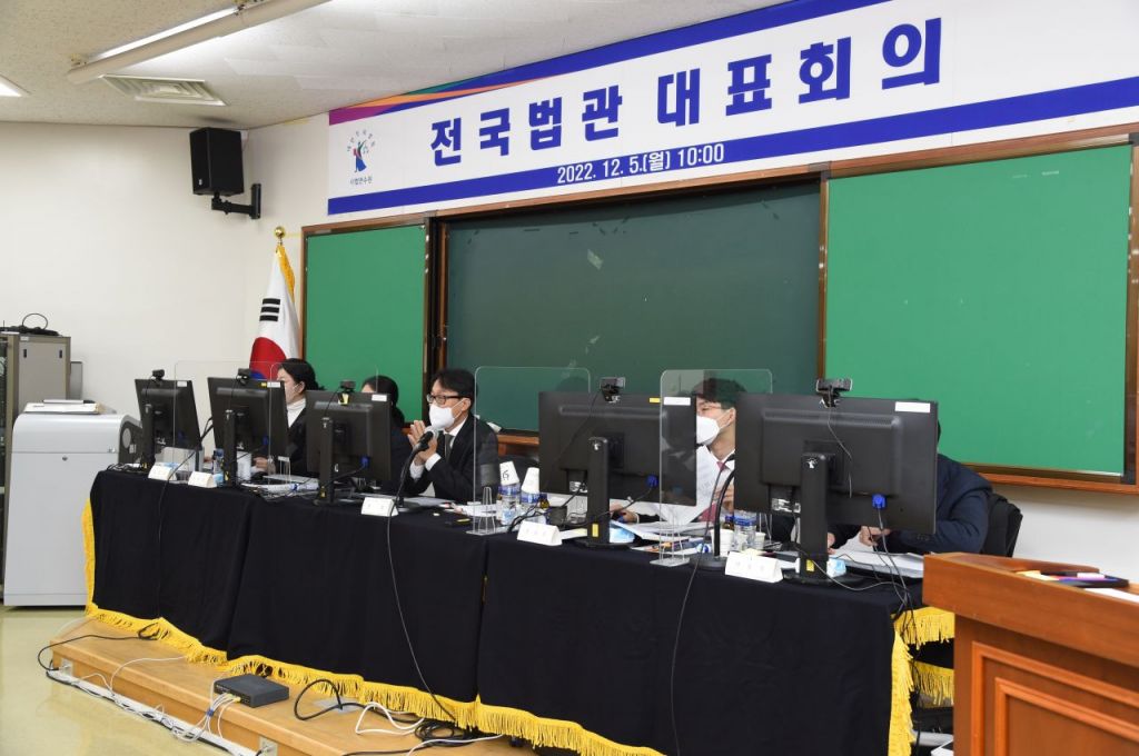 대표회의는 경기 고양시 사법연수원에서 2022년 하반기 정기회의를 열고 법원장 후보 추천제 등 7개 의안에 대해 논의했다고 6일 밝혔다. 회의에는 110명의 법관이 온·오프라인으로 참여했다.