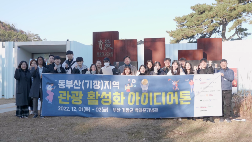 ‘동부산(기장) 지역 관광 활성화를 위한 아이디어톤’ 참가자들이 단체 기념사진을 찍고 있다.