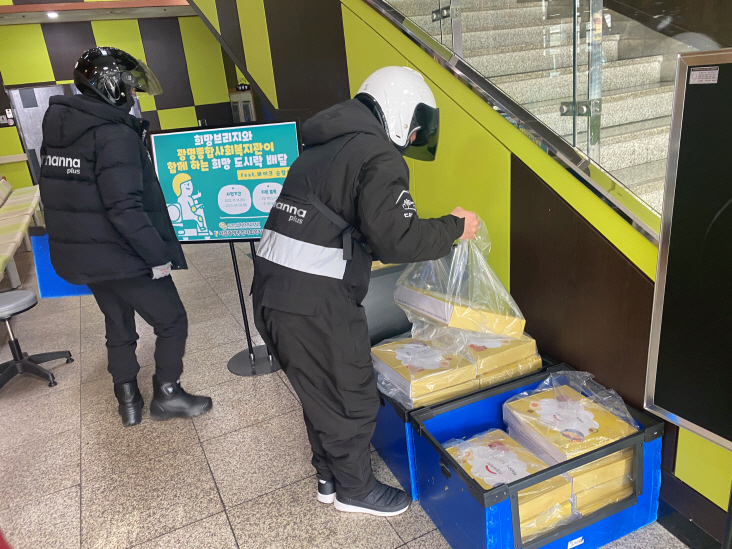 만나코퍼레이션의 배달대행 브랜드 만나플러스 광명 제휴 본사의 ‘바이크 순찰대’가 지역 아동, 청소년을 위한 ‘희망도시락’ 지원 사업에 참여했다.