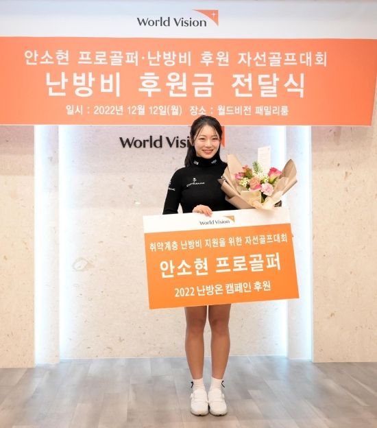 [아시아경제 이서희 기자] 12일 프로골퍼 안소현(27)이 취약 계층을 위한 난방비 후원금과 용품을 구호단체 월드비전에 전달했다.