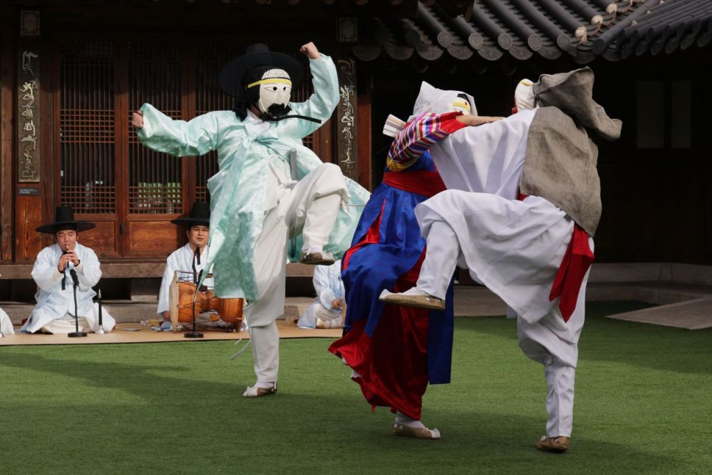 지난 4일 오전 서울 남산국악당 야외마당에서 양주별산대놀이 공연이 열리고 있다. 사진=연합뉴스