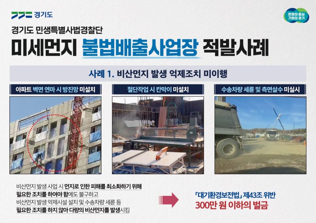 미세먼지 불법배출사업장 적발 사례 그래픽=경기도청 제공
