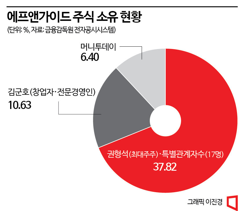 한편 5% 이상 주주에는 김 대표에 이어 경제신문 머니투데이가 올라와 있다. 지분 6.40%를 보유 중이다. 더불어 화천그룹 측 지분에는 이철순·전영묵 등 에프앤가이드 임원들의 지분이 7.51% 포함되어 있다.