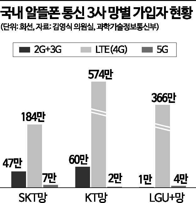 통신사업자별로 LTE망을 분리해 보면 KT망 가입자가 574만회선으로 가장 많다. LG유플러스망 가입자는 366만회선, SKT망 가입자는 184만회선으로 비교적 적다. SK텔링크(60만회선), KT엠모바일(116만회선), 미디어로그(85만회선) 등 통신 3사 자회사들이 각 망에서 상위를 차지했다.