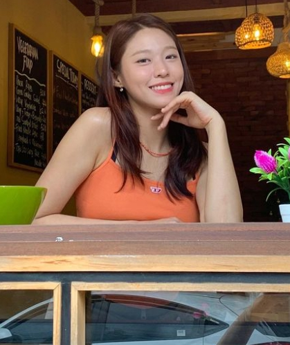 사진 속 설현은 주황색 상의와 핫팬츠를 입고 발리의 한 레스토랑 발코니에 앉아 휴식을 즐기고 있다.