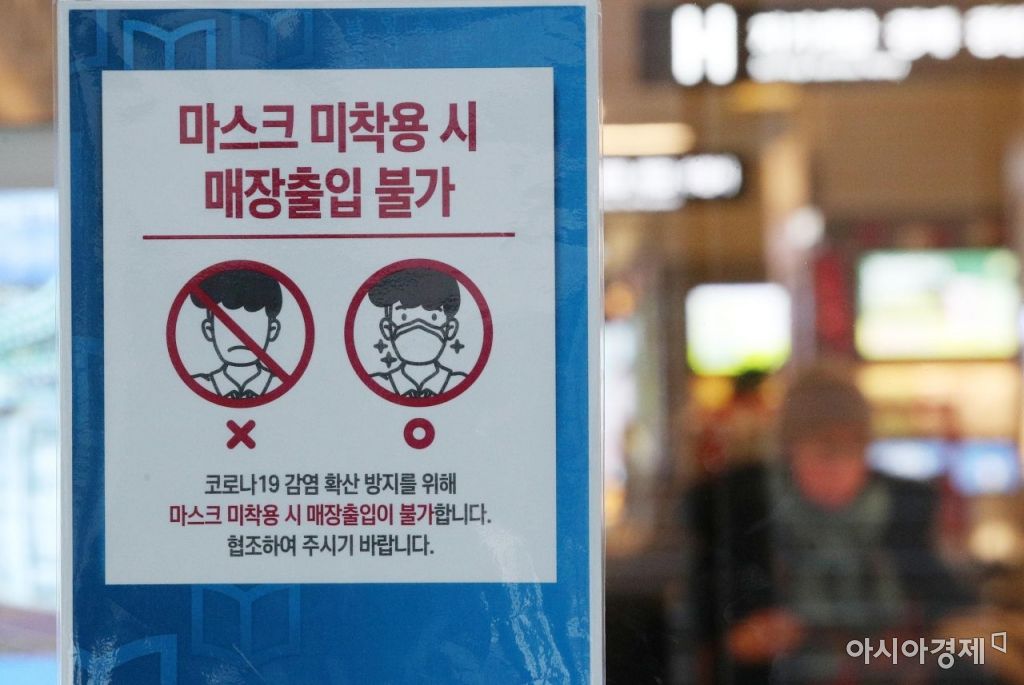 23일 서울 시내 한 서점에 마스크 착용 관련 안내문이 게시돼 있다. 정부는 이날 코로나19 중대본 회의를 통해 실내 마스크 착용 의무 조정안을 확정해 발표한다./김현민 기자 kimhyun81@