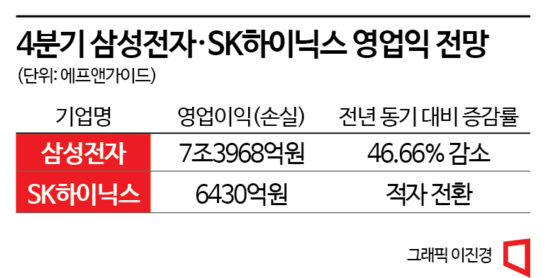 그 사이 국내 반도체 기업들은 '악화일로'를 걷고 있다. 삼성전자는 올해 3분기 반도체 부문에서 영업익이 전년 동기 대비 50% 가까이 감소하는 부진한 실적을 냈다. SK하이닉스 역시 3분기 영업익이 60.5% 급감했으며, 영업이익률도 15%로 주저앉았다. 4분기 실적 전망도 암울하다. 금융정보업체 에프앤가이드는 삼성전자의 올 4분기 영업익 평균 전망치를 7조3968억원으로 잡았다. 14조원에 달했던 전년 동기 대비 46.66% 급감했다. 삼성전자보다 메모리 비중이 큰 SK하이닉스의 경우 4분기 적자를 낼 것으로 보인다. 4분기 영업손실 전망치는 6430억원이다. 조단위 영업이익을 내던 회사가 내년에는 조단위 적자를 낼 가능성이 크다. 반도체 업계 관계자는 "정책은 타이밍이 중요하다"며 "2022년은 미국이 '칩4'를 선언하고 각국이 반도체 보조금을 쏟아부어 한국도 정치권 도움이 절실했지만 시기를 놓쳤고, 그 사이 기업의 실적과 투자심리는 급격히 위축됐다"고 전했다.