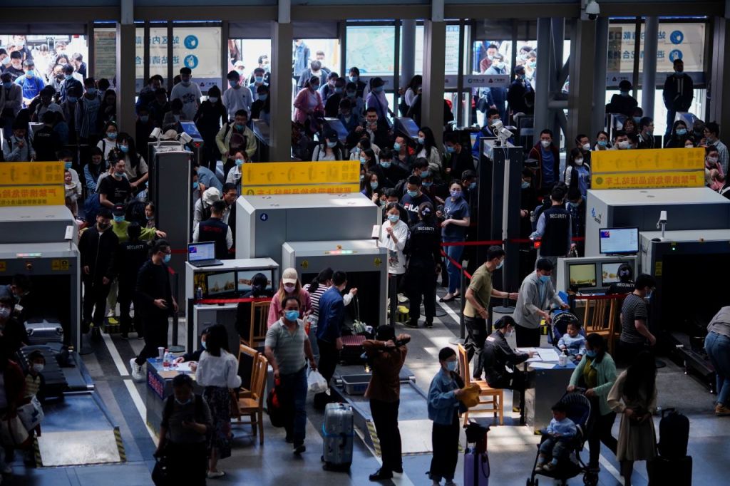 중국 연휴기간 여행자들로 붐비는 상하이 철도역. [사진=연합뉴스 제공]