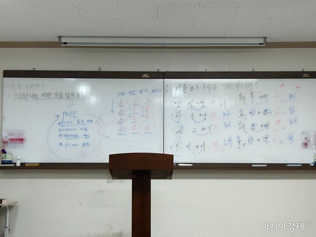 강의실 구석에 있는 자음, 모음 판./사진=김정완 기자 kjw106@