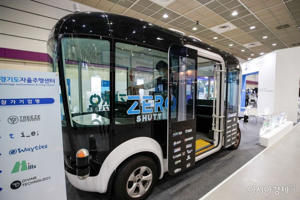 서울 강남구 코엑스에서 열린 '2022 스마트모빌리티 물류산업전'에 경기도 자율주행차가 전시돼 있다. / 사진=강진형 기자aymsdream@