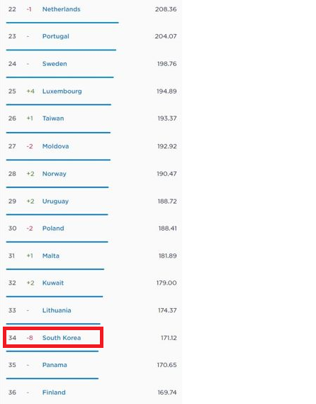 2019년에는 전 세계 2위로 세계 최고 수준으로 평가받았지만 2020년 4위, 2021년 7위로 하락하더니 지난해엔 34위로 급락한 것. 초고속 인터넷 속도가 빠른 국가는 320.08Mbps의 모나코였다. 다음은 싱가포르, 칠레, 홍콩 순이었다.