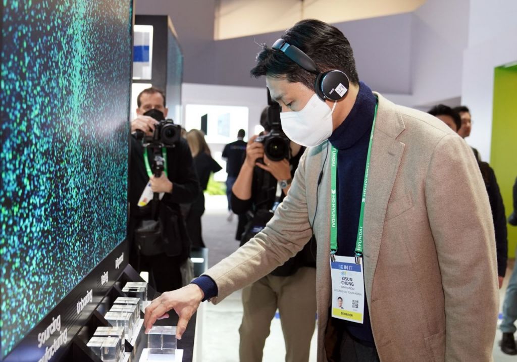 정기선 HD현대 대표이사 사장이 6일(현지시간) 미국 라스베이거스에서 열린 'CES 2023' 삼성전자 부스를 둘러보고 있다. 사진=HD현대 제공