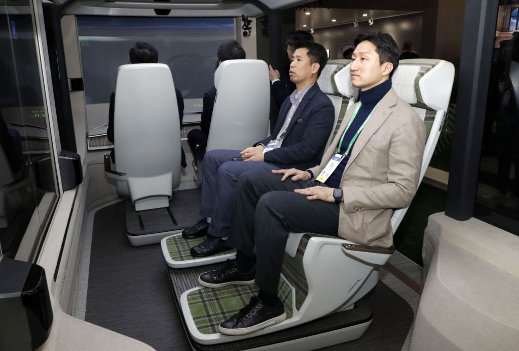 정기선 HD현대 대표이사 사장이 6일(현지시간) 미국 라스베이거스에서 열린 세계 최대 전자·IT 전시회 'CES 2023' 현대모비스 부스를 둘러보고 있다.