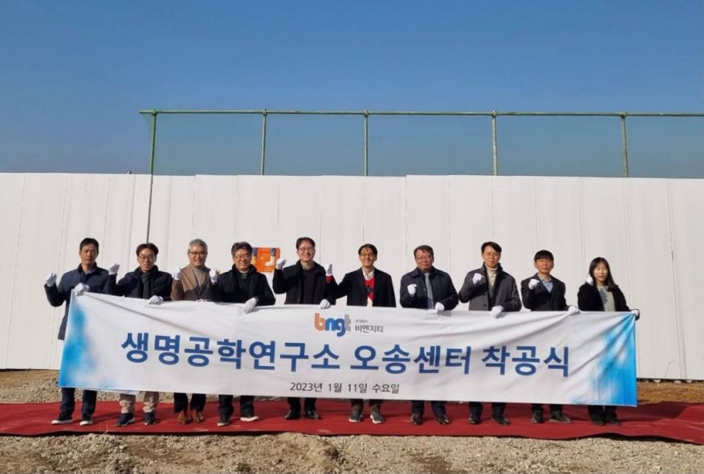 비엔지티는 오송첨단의료복합단지 내 3000평 규모의 부지(9533㎡)에 신규 바이오 연구시설 건축인허가를 마치고 이날 착공식을 진행했다. 이 시설은 ‘비엔지티 생명공학연구소 오송센터’로, 올해 상반기 완공을 목표로 공사가 진행될 예정이다.