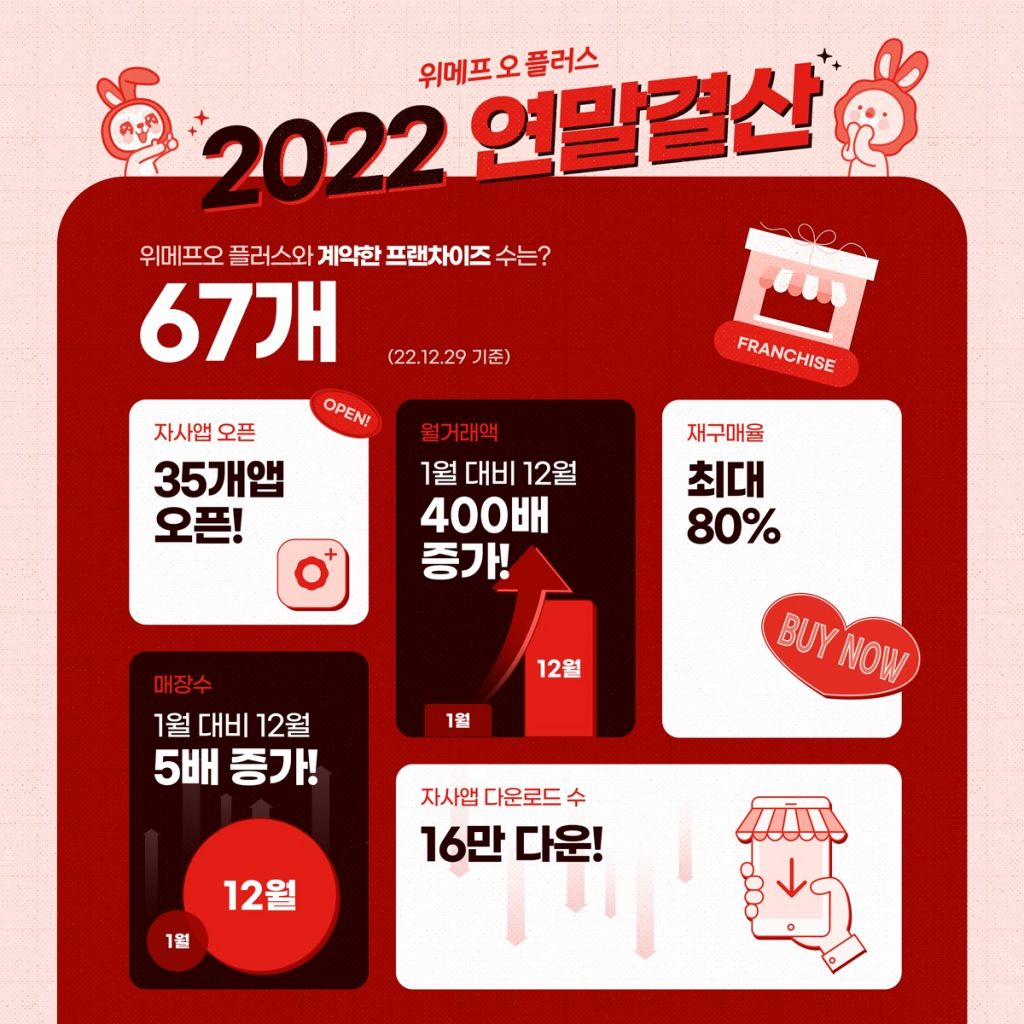 자사앱을 통한 월 거래액은 출시 초기인 1월 대비 400배 이상 증가했다. 올 1분기부터는 매출 분석 솔루션 '앳트래커'의 배달 플랫폼 데이터 서비스를 도입해 각 프랜차이즈의 매출 분석과 메뉴 운영 등을 추가 지원할 예정이다. 위메프오 관계자는 "앞으로도 많은 프랜차이즈가 위메프오플러스를 안정적으로 이용할 수 있도록 최선을 다할 것"이라고 말했다.