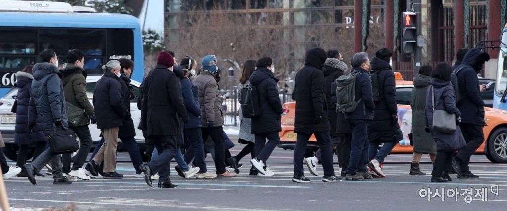 서울 광화문 거리에서 두터운 옷차림의 시민들이 발걸음을 재촉하고 있다./김현민 기자 kimhyun81@