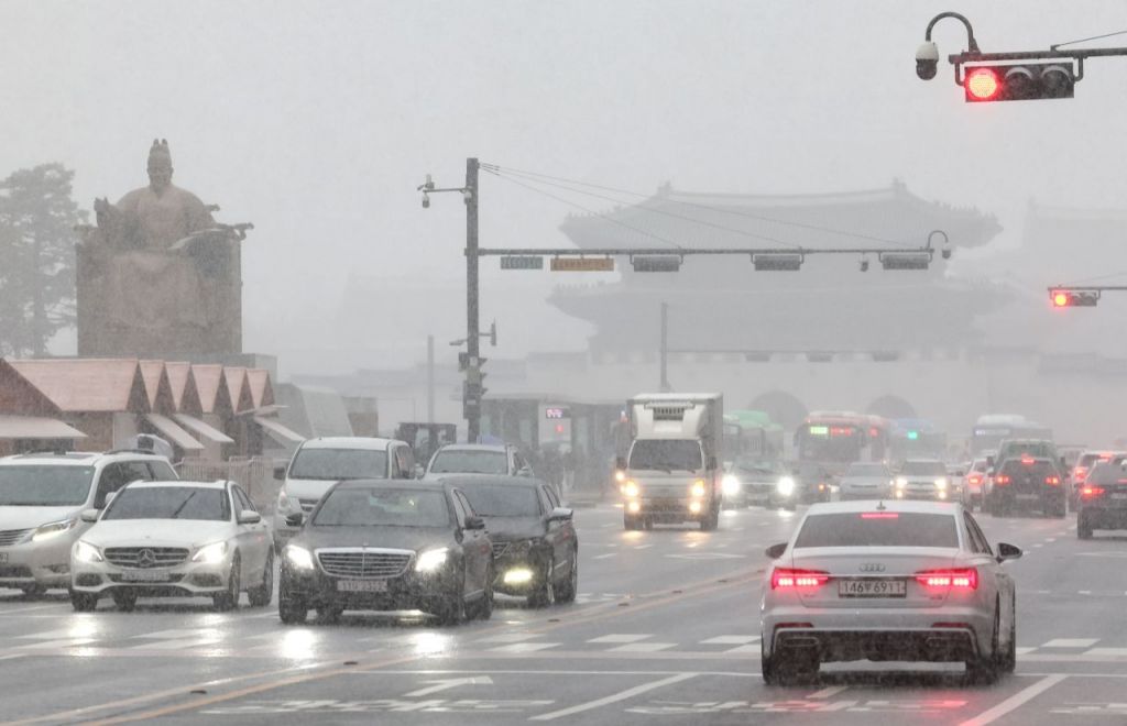 서울 광화문 광장에 눈이 내리고 있다. [이미지출처=연합뉴스]