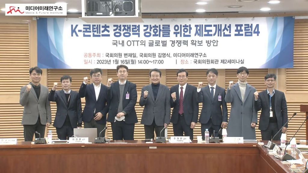 'K-콘텐츠 경쟁력 강화를 위한 제도개선 포럼4' 참가자들이 기념사진을 촬영하고 있다. [사진출처=미디어미래연구소 유튜브]