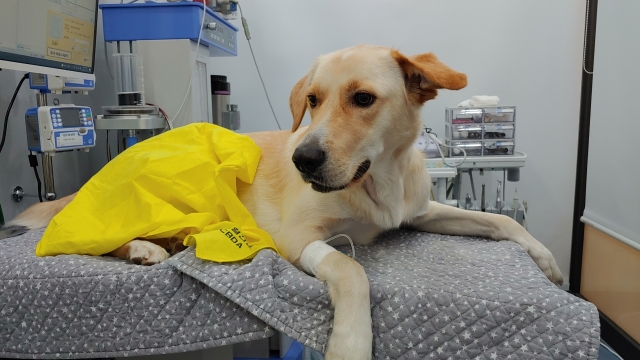 한국헌혈견협회 427호 헌혈견 라프가 헌혈을 하고 있다. / 사진=한국헌혈견협회