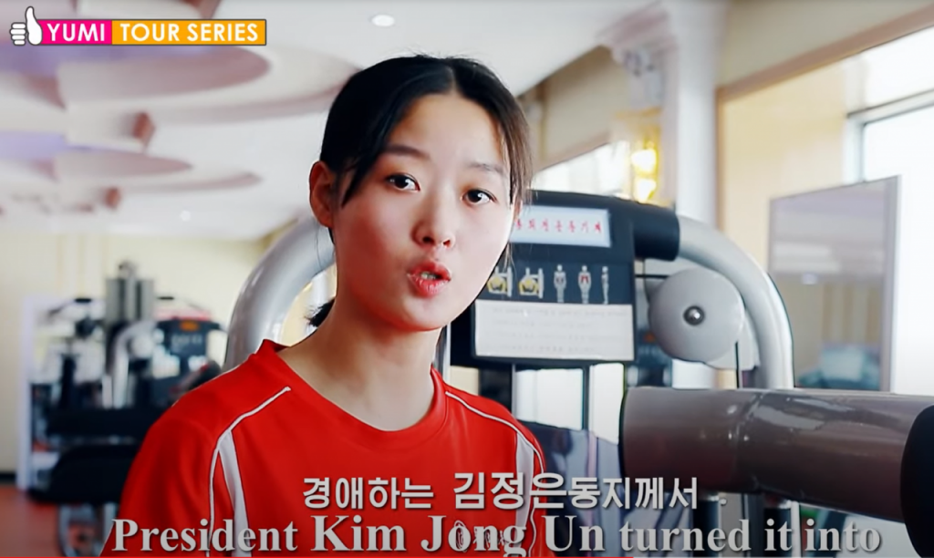가장 최근인 지난 13일에 올라온 영상은 유미가 헬스장인 '통일거리운동센터'를 찾아 개인 PT를 받는 모습이 담겼다. 유미는 센터 앞에 도착해 영어로 "오늘은 저의 생활의 한 단면을 보여드리겠다. 저는 매주 한 번 꼭 운동한다"고 말한다. 이어 각종 기구를 활용해 운동하는 유미의 모습이 나온다.