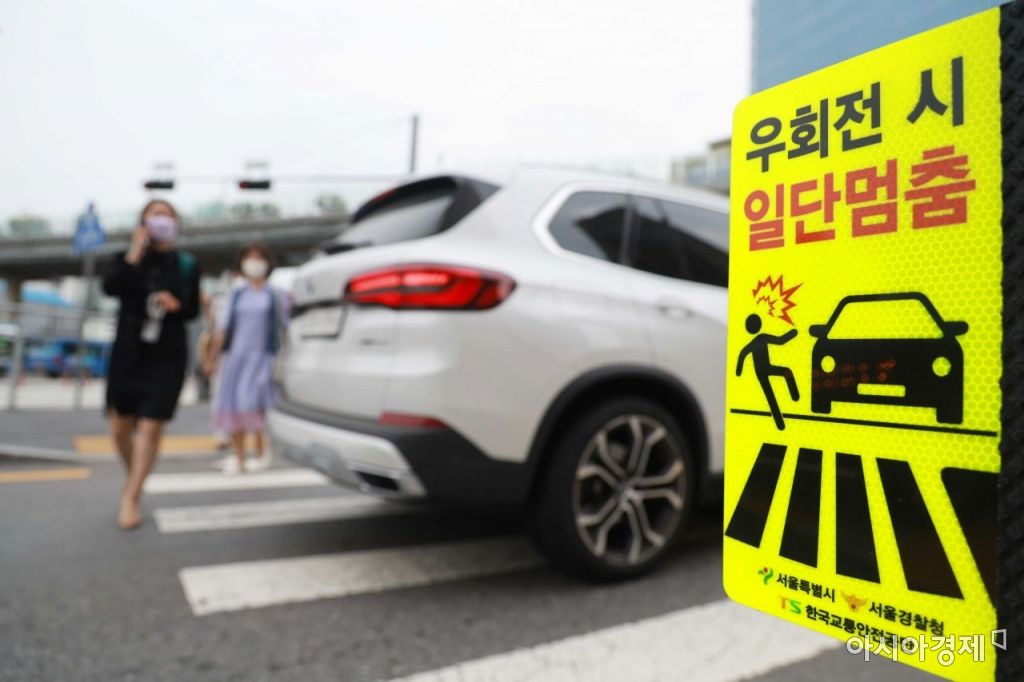 지난해 7월 12일부터 시행된 도로교통법 개정안은 보행자가 통행 중이거나 '통행하려는 때' 운전자에게 일시정지 의무를 부여했는데, 앞으로는 보행자 유무와 관계없이 적색 신호에서는 일단 멈춰야 한다.