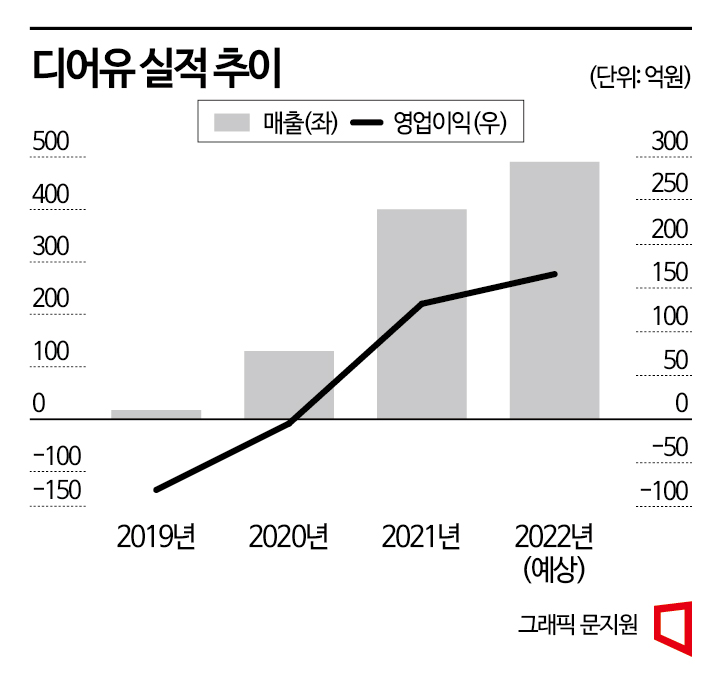 디어유의 매출이 본격적으로 증가한 시기는 2020년 디어유 버블을 출시하면서다. 2019년 17억원이었던 매출액은 2020년 130억원으로 급증했다. 2021년에는 400억원으로 껑충 뛰었다. 지난해에도 491억원의 매출액을 기록했을 것으로 전망된다. 전체 매출에서 디어유 버블의 매출 비중은 96%에 이른다.