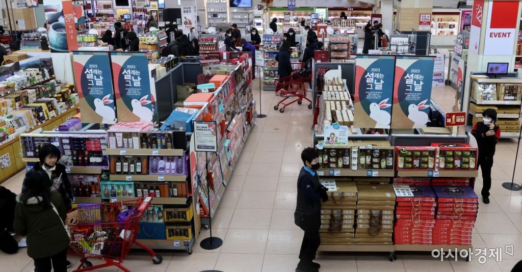 서울 시내의 한 대형마트에 설 선물세트가 진열되어 있다./김현민 기자 kimhyun81@