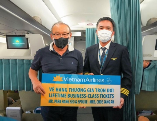 18일 베트남 VTC 등 현지 언론에 따르면, 베트남항공은 박항서 감독 부부에게 한국과 베트남을 오가는 항공편의 비즈니스석을 평생 이용할 수 있는 티켓을 전달했다.